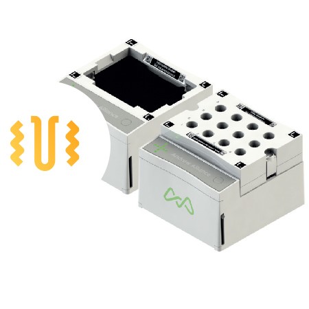 Shaker+ je ena od naprav, ki so na voljo za uporabo z robotom Andrew+. Gre za orbitalni stresalnik, ki je povezan s programsko opremo OneLab, preko katere lahko nastavite hitrost mešanja, kar zmanjša napake in zagotavlja večjo ponovljivost. Stojalo za epruvete je kompatibilno s številnimi vrstami epruvet, obenem pa ima naprava dodatno matrično črtno kodo in oznako, ki služi za vodenje uporabnika kot tudi kot kompas za mobilno roko robota Andrew+.